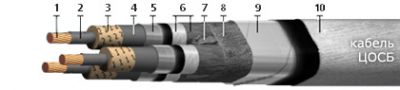 Элементы конструкции кабеля ЦОСБ 3х400